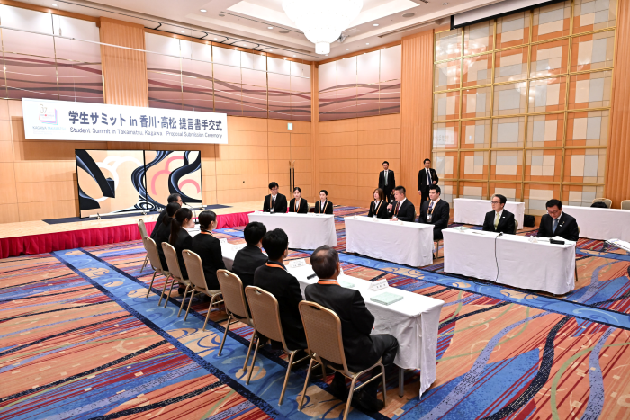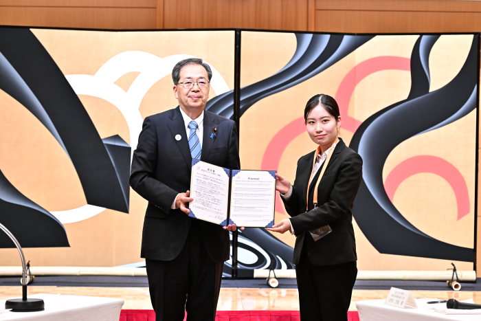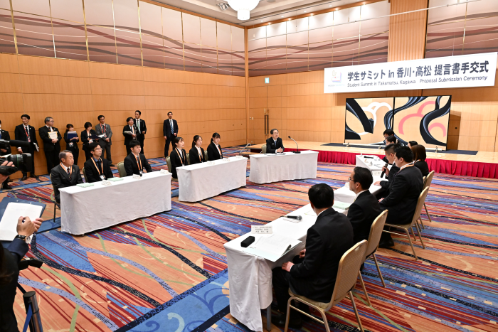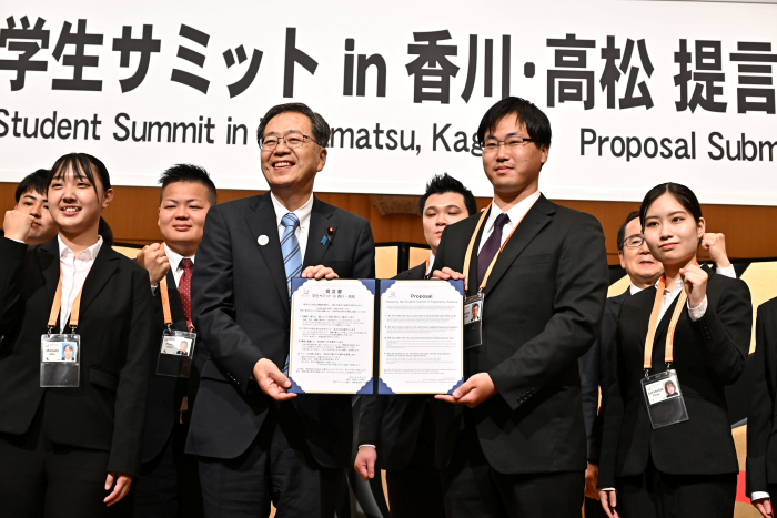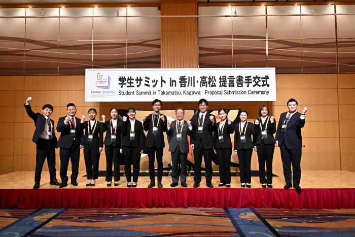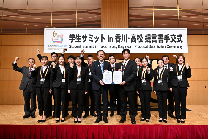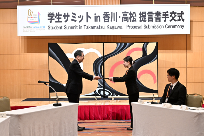 令和5年7月7日、G7香川・高松都市大臣会合の一環として、斉藤国土交通大臣へ本学学生がまとめた提言書を手交しました。