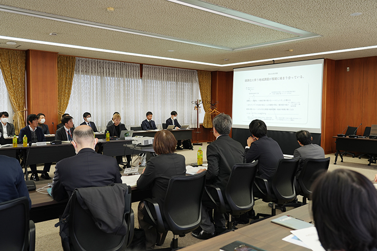 このたびの開催にあたっては、地方自治体、経済団体、一般企業の皆様にお越しいただきました。本学の財務状況及び教育研究活動等の内容を説明したのちに、東かがわ市をフィールドとした社会との共創に関する取組事例(「ぐんだらけ」)について、本学のイノベーションデザイン研究所に所属している三谷なずな特命助教から発表がありました。今回の説明会を通じて、本学の活動内容を情報発信することができ、参加者の方々と意見を交換する機会を得ることができました。