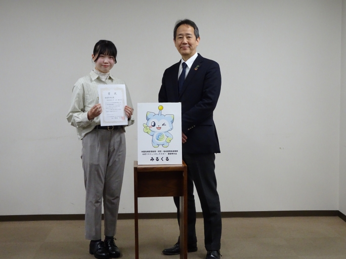 優秀作品賞には、経済学部4年・清家菜那さんが制作した「さちまる」