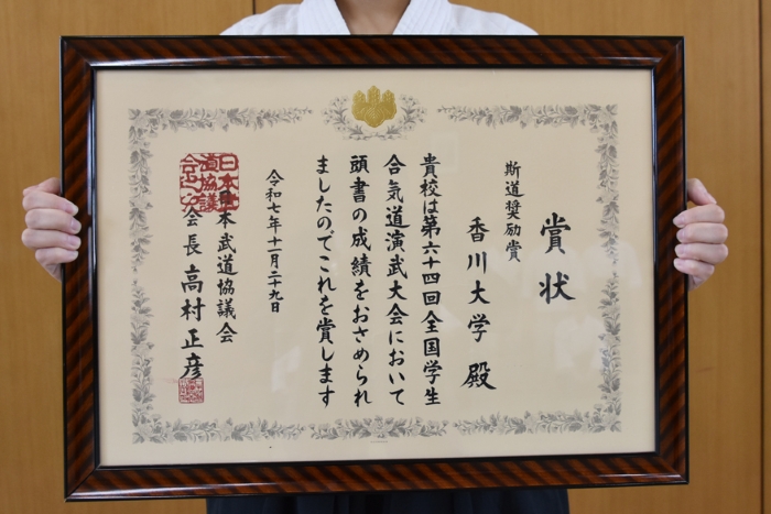 令和7年11月29日(土)、日本武道館にて開催された「第64回全国学生合気道演武大会」において、本学合気道部が「斯道奨励賞」を受賞しました。