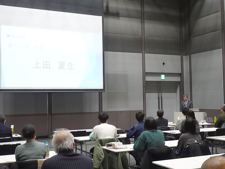 令和8年1月29日(木)、高松シンボルタワー展示場において、令和7年度香川大学瀬戸内圏研究センターシンポジウムを開催しました。本シンポジウムでは、瀬戸内海が直面する様々な環境問題や諸課題について、当センターが取り組んでいる研究を発信する目的で開催しています。今年度は、海産微細藻類の栄養価やこれを餌料としている二枚貝について研究を進められている専門家をお招きすると共に、当センターが令和4年度から進めている瀬戸内海の「環境・資源研究」と「地域産業振興」に特化した新規プロジェクト研究及び、令和6年度から東京藝術大学と連携しアートとサイエンスの融合に基づく事業「地域中核・特色ある研究大学強化促進事業(J-PEAKS)」の成果について紹介しました。これらの講演に対し、会場からは多様な視点からご意見をいただきました。