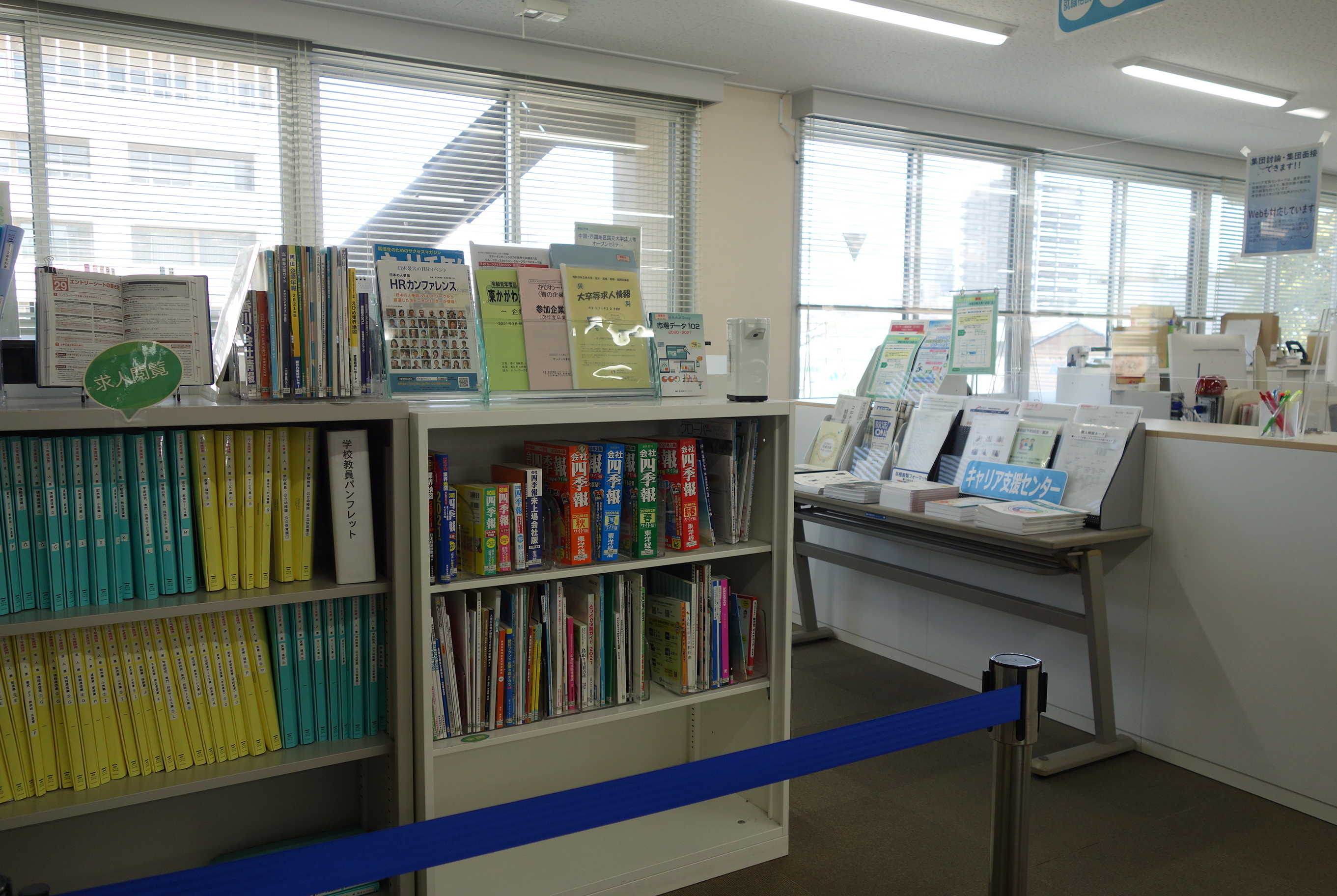 新聞・雑誌・図書就職活動に必要な情報を収集するため、新聞、雑誌、図書(SPI・WEBテスト・面接/エントリーシート対策・業界研究)等を設置し、自由に閲覧できます。 |