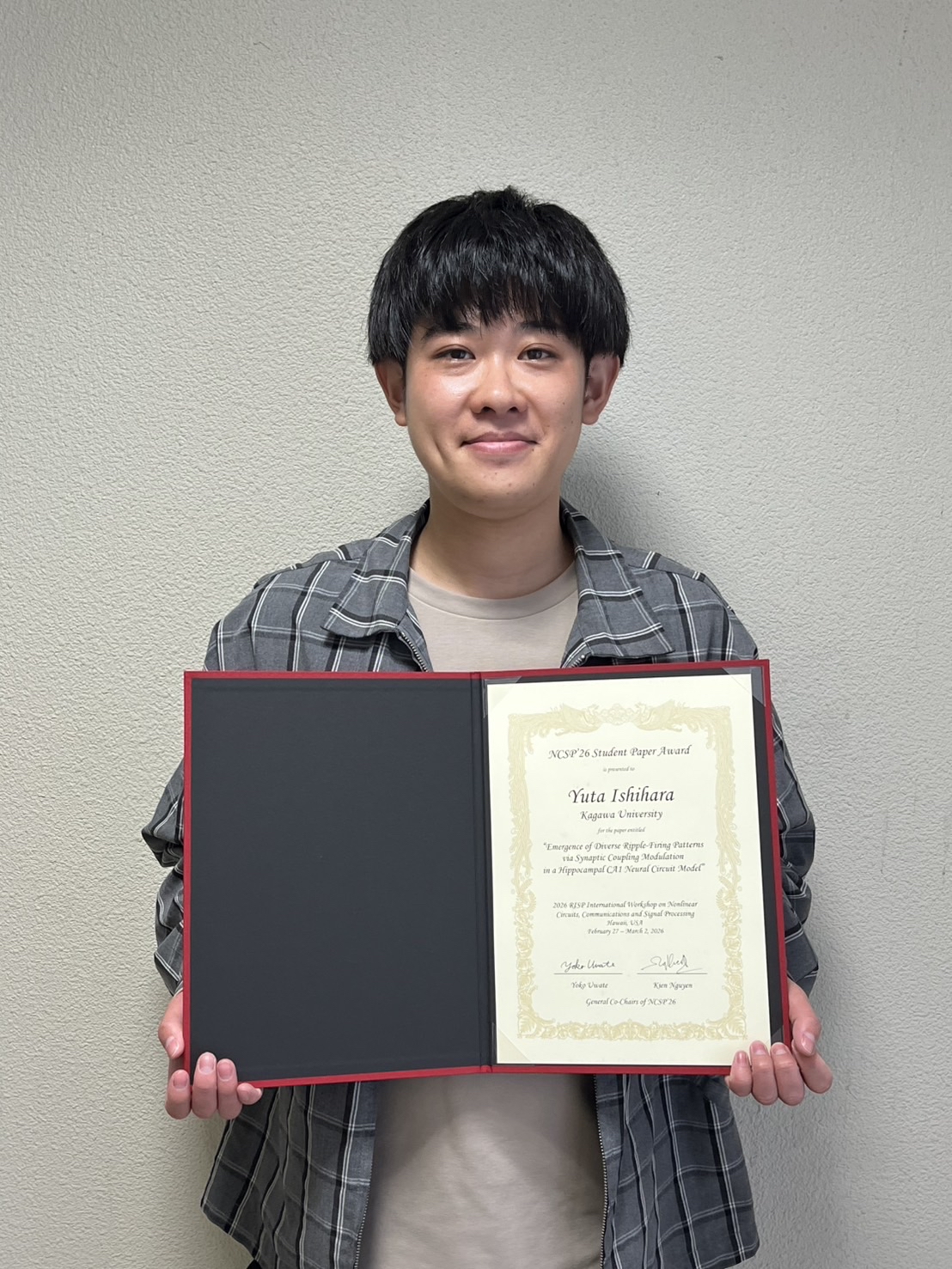 藤本研究室の石原裕太さんがNCSP'26 Student Paper Awardを受賞しました。