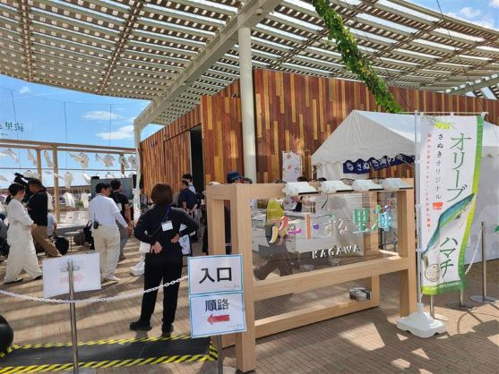 香川県ブースでは併せて展示やオリーブはまちのPR等も行われて、大勢の方が見に来られていました。