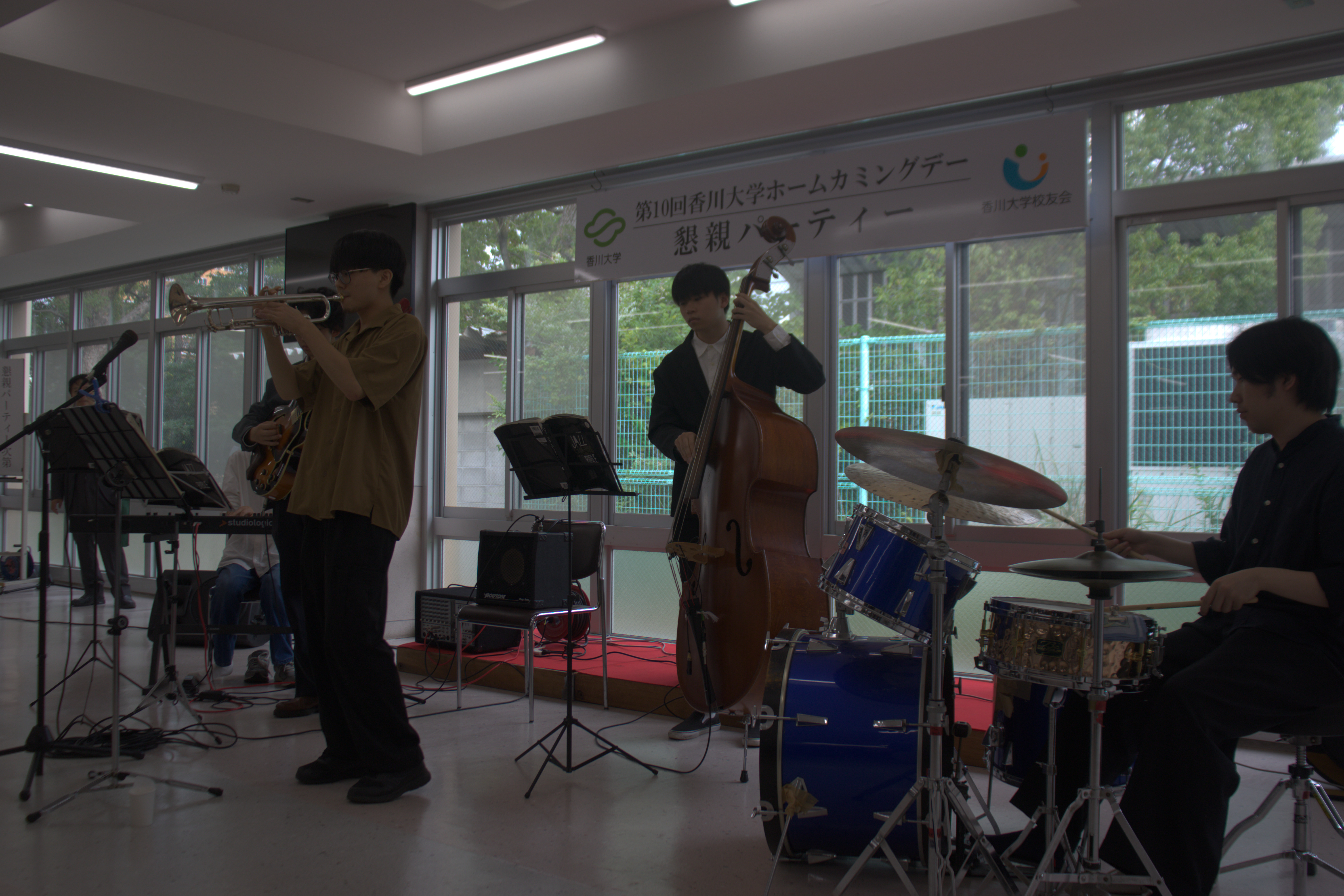 懇親パーティーでは、吹奏楽団とジャズ研究会Birdlandによる 生演奏や大学グッズが当たる抽選会などのイベントも行われ、会場を大いに盛り上げました。懐かしい日々を思い出しながら 仲間と再会し交流•親睦を深めていただく場となりました。 2年後の次回、第11回も様々な企画を準備し、皆様のお越しをお待ちしております。