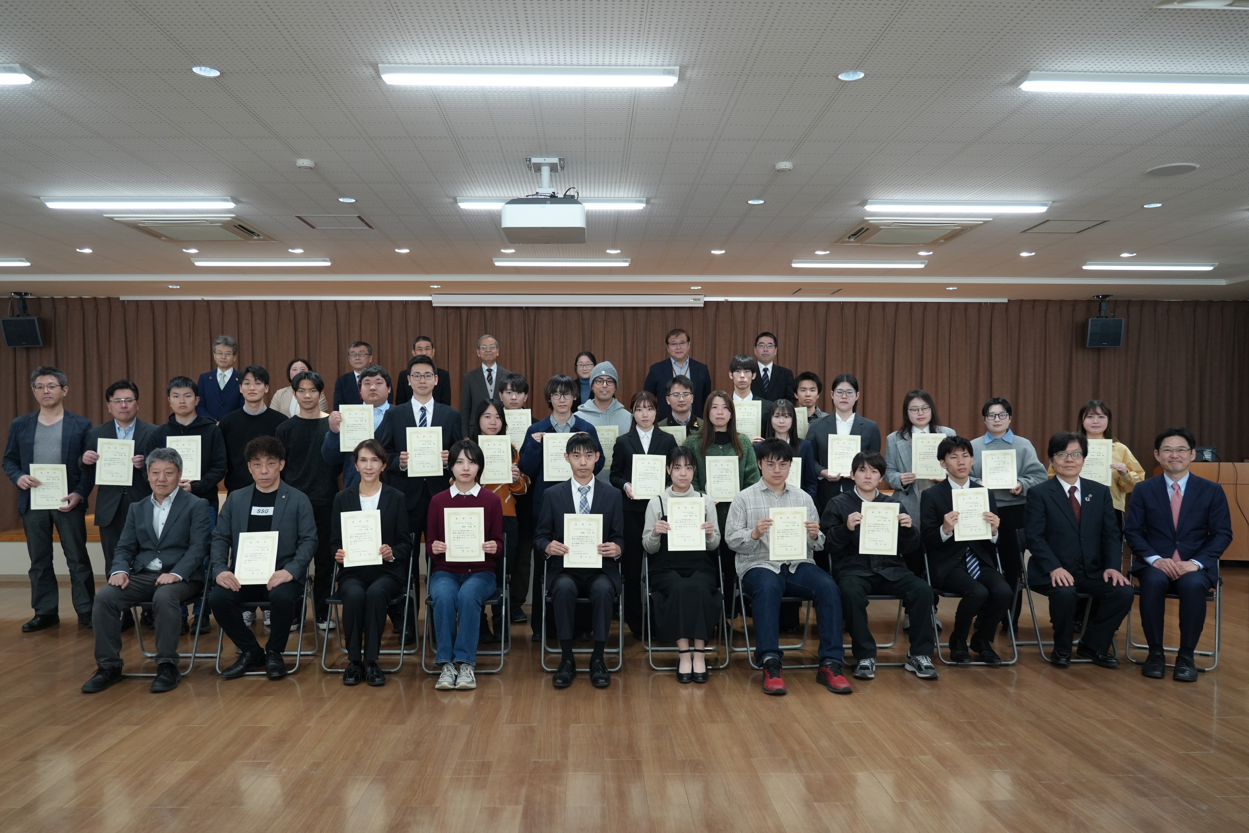 8月6日、オリーブスクエアにおいて、各学部・研究科から推薦のあった、学業成績優秀者56名