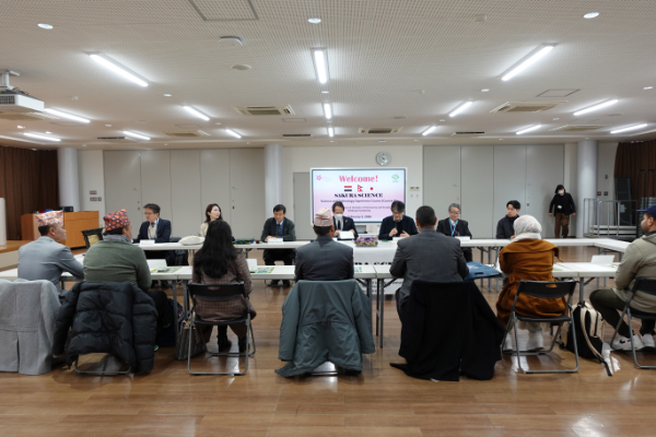 当日は、和田健司副学長(インターナショナルオフィス長)による歓迎の挨拶に続き、秋光和也理事・副学長(IECMS機構長)より挨拶がありました。その後、金田義行教授(地域強靭化研究センター長)より本プログラムの概要説明が行われ、招へい者一人ひとりによる自己紹介がありました。終盤には記念品の贈呈および記念撮影が行われ、終始和やかな雰囲気の中で交流が深められました。