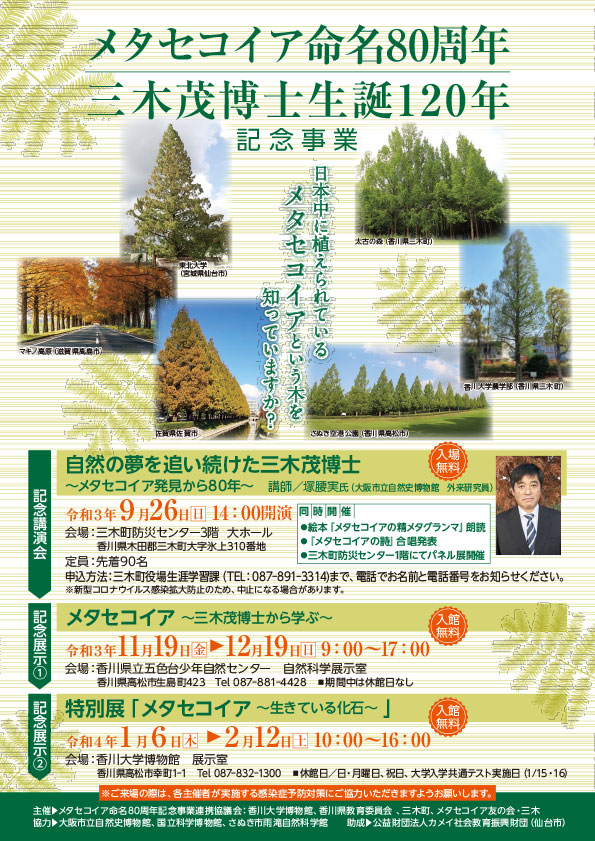 生誕120年を記念して開催された展示をリニューアルして、一同に展示しました。香川の偉人=三木茂博士とメタセコイアについて、詳しく知ることができます。