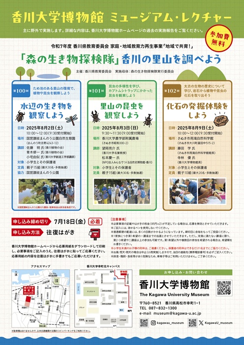 カタツムリ(陸産貝類)は陸上で生活するようになった貝類の総称であり、日本に約800種がいるといわれています。カタツムリは移動距離が短いため、各地で種分化がおきており、多くの種が日本でもみられます。そのため種分化や生物多様性の成り立ちを考える上で優れた生物です。 香川県東かがわ市在住の多田昭氏(香川大学農学部卒)は全国的に著名なアマチュアの陸産貝類研究家であり、これまで数多くの新種を発見しています。また同氏は国内外から収集した膨大な量の陸産貝類コレクションを保有しており、その中には希少な標本も数多く含まれています。 香川大学博物館第28回企画展では、自然科学の研究材料としてのカタツムリの面白さと多田氏の研究成果について、同氏の膨大で貴重な標本資料等の展示を通して紹介します。