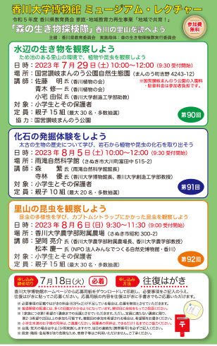 講師:望岡亮介氏(香川大学農学部附属農場長、香川大学農学部教授)、松本慶ー氏(NPO法人みんなでつくる自然史博物館・香川)