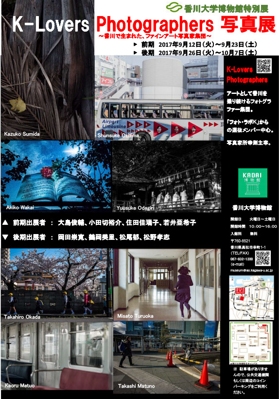 「K-Lovers Photographers」は、写真家所幸則氏が主宰するアートとして香川を撮り続けるファインアート写真家集団。そこから選抜されたメンバー8名の作品を前期後期に分けて展示。見慣れた香川県内の風景を彼らが独自の視点で写すことでそこに新たな価値が見いだされていく。選抜メンバー各々の世界観が見られる展示